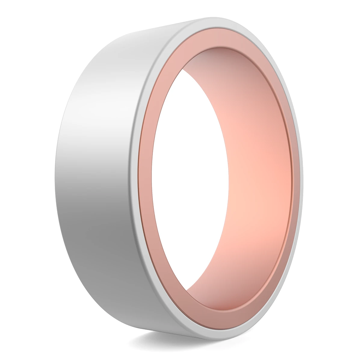 Reversible Two Tone Silicone Ring in Silver Rose, showing the classy pink-silver color combination. This tasteful ring includes the cool flip inside-out design to give you an effortless switch between two graceful looks.