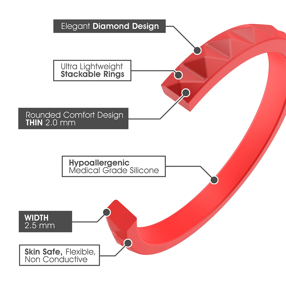 Our rings are built on the foundation of safety and durability. They're 100% non-toxic, hypoallergenic, and designed to withstand the challenges of your daily pursuits, whether you're hitting the gym, working with heavy machinery, or simply crafting. With our rings, you're not just making a statement – you're embracing a lifestyle that blends love, adventure, and resilience seamlessly. Choose quality, comfort, and style with our silicone wedding bands and let your love story shine in every moment of your life. If you are not sure about the sizes, see our RING SIZE CHART
