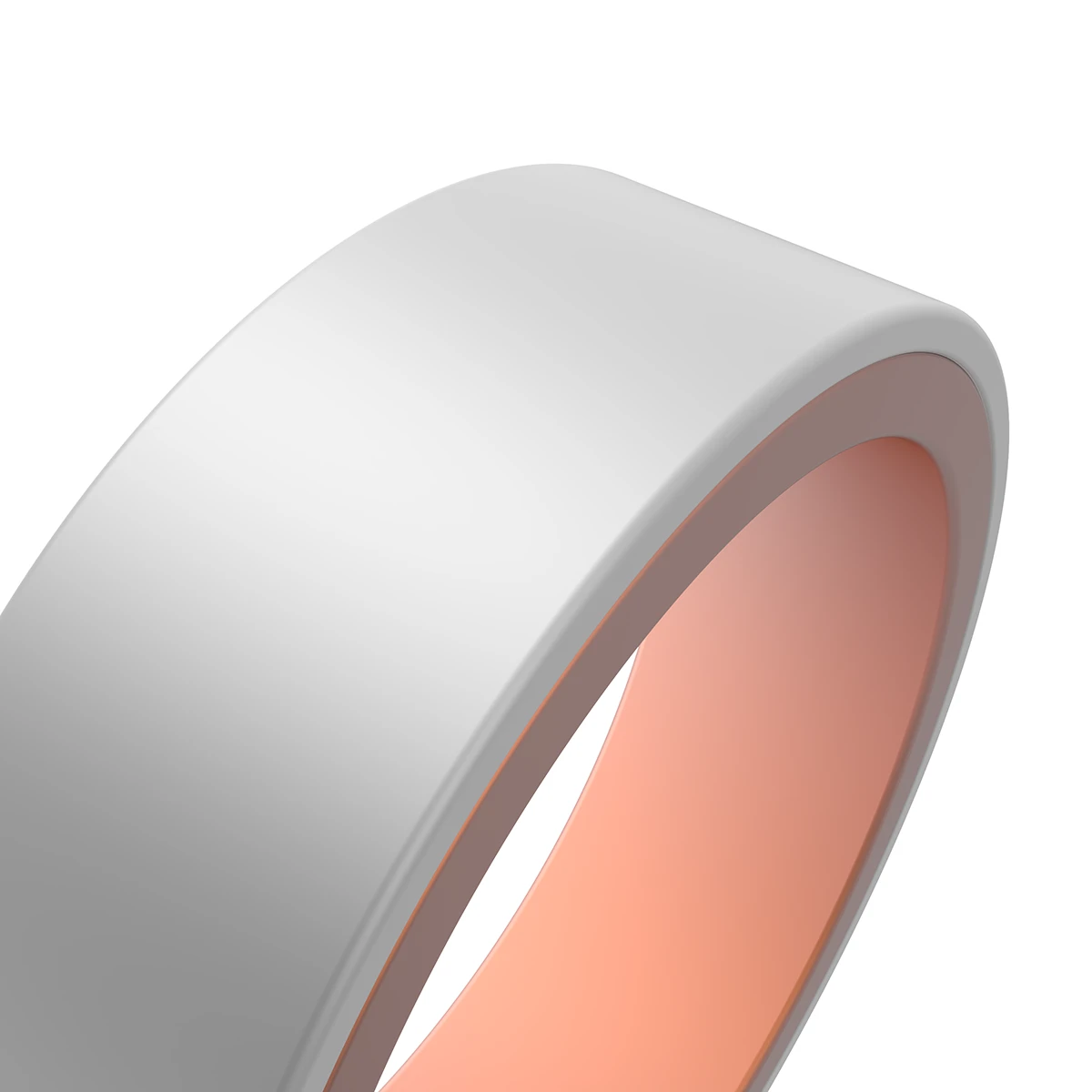 Reversible Two Tone Silicone Ring in Silver Rose, showing the classy pink-silver color combination. This tasteful ring includes the cool flip inside-out design to give you an effortless switch between two graceful looks.